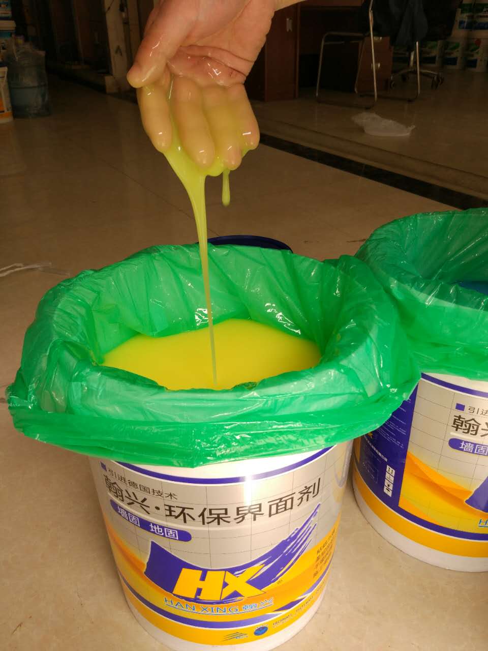 現(xiàn)在的房屋質(zhì)量良莠不齊,墻面會出現(xiàn)空鼓,開裂,掉粉不平整等問題。如果在這樣的墻面上進行施工會出現(xiàn)很多隱患,造成后續(xù)的油漆乳膠漆達不到預(yù)期效果或者被破壞。所以在膩子,乳膠漆施工前,用翰興界面劑對墻地面進行有效的處理,會對接下來的施工起到很好的輔助和保護效果:一 膠漿滲透到墻面基層中,封閉較大毛細孔,形成防護膜??梢猿龎m防止揚灰,使整個施工空間無塵清潔。二在批刮膩子時,讓墻面吸水率達到平衡,不會快速吸收膩子中的水分,防止膩子開裂。三增加墻面拉毛效果,對膩子的批刮起到輔助作用。地固界面劑還會承擔地面返潮,抗堿的作用。